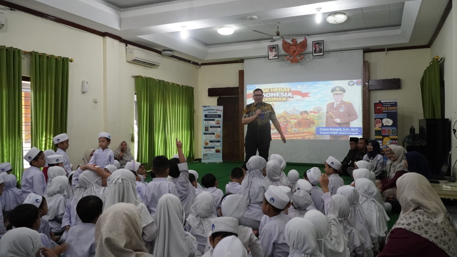 Pada kesempatan tersebut, Kepala BNNP Jateng juga menyampaikan materi edukatif bertema “Anak Hebat Indonesia Bersinar”, dengan menekankan bahwa setiap cita-cita dan impian dapat tercapai apabila anak-anak menjaga kesehatan tubuh, menjauhi perilaku berisiko, serta tumbuh di lingkungan yang positif.