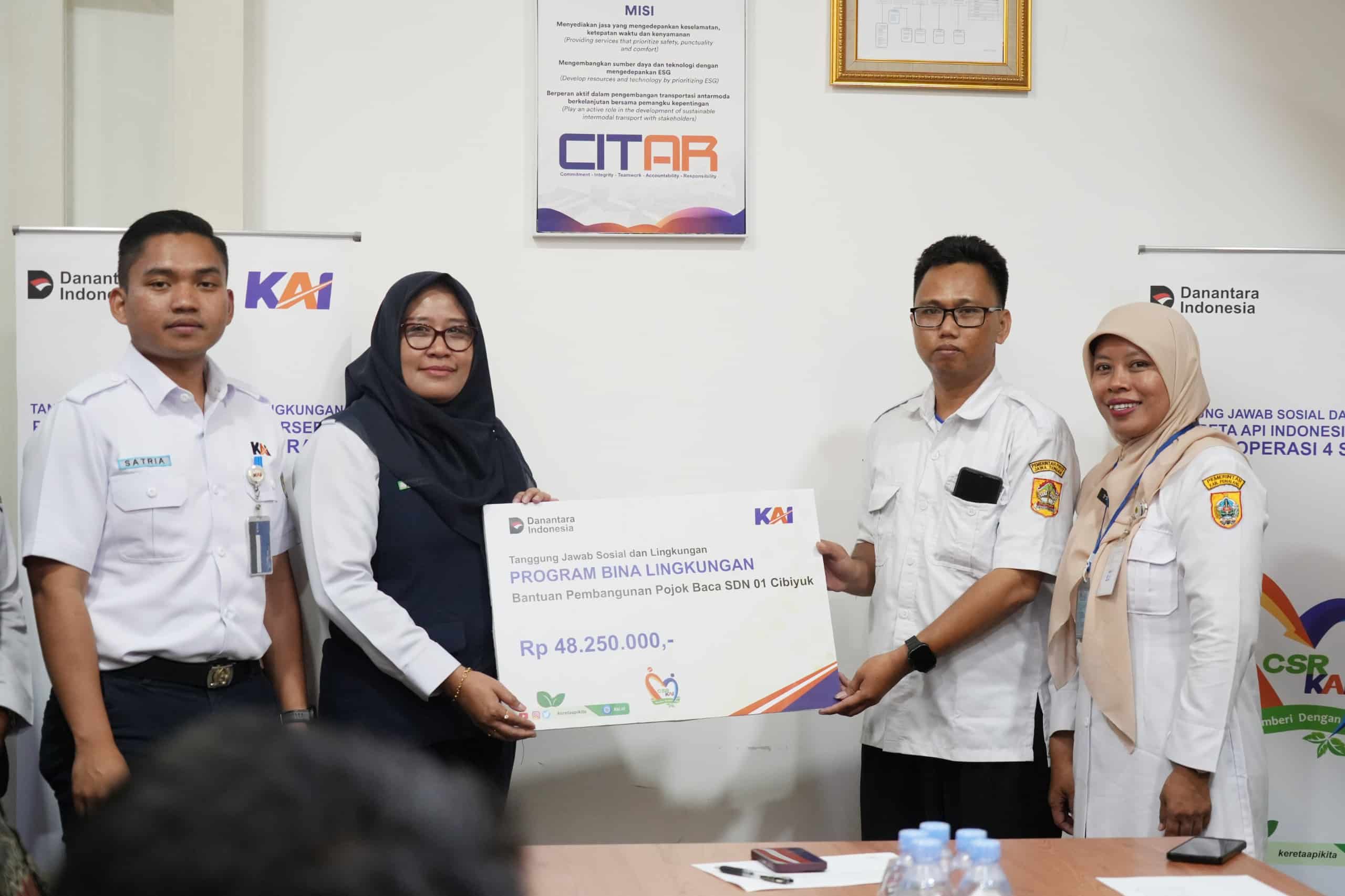 Manager Humas KAI Daop 4 Semarang Franoto Wibowo mengatakan, bantuan tersebut menjadi wujud nyata komitmen perusahaan kereta api itu untuk tumbuh bersama masyarakat. Dari perbaikan lapangan olahraga di Kelurahan Wates Semarang, renovasi masjid di Kelurahan Petarukan Pemalang, hingga pembangunan pojok baca di SDN 01 Cibiyuk Pemalang, yang kini menjadi tempat baru bagi anak-anak desa untuk belajar dan membaca bersama.
